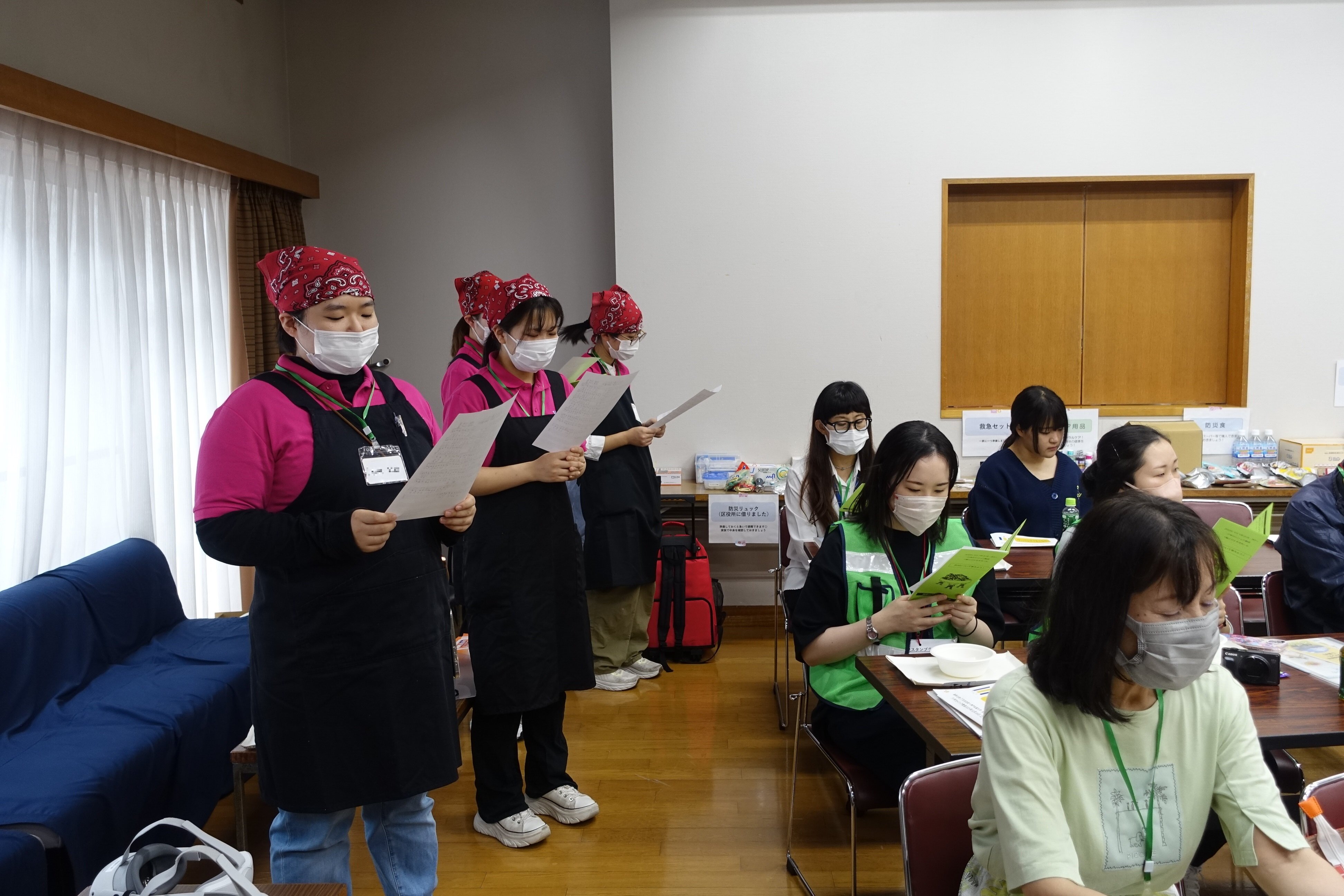 [地域連携]篠原北町一丁目自治会主催の防災イベントで「蒸しパン」のパッククッキングや書道パフォーマンス作品展示を行いました