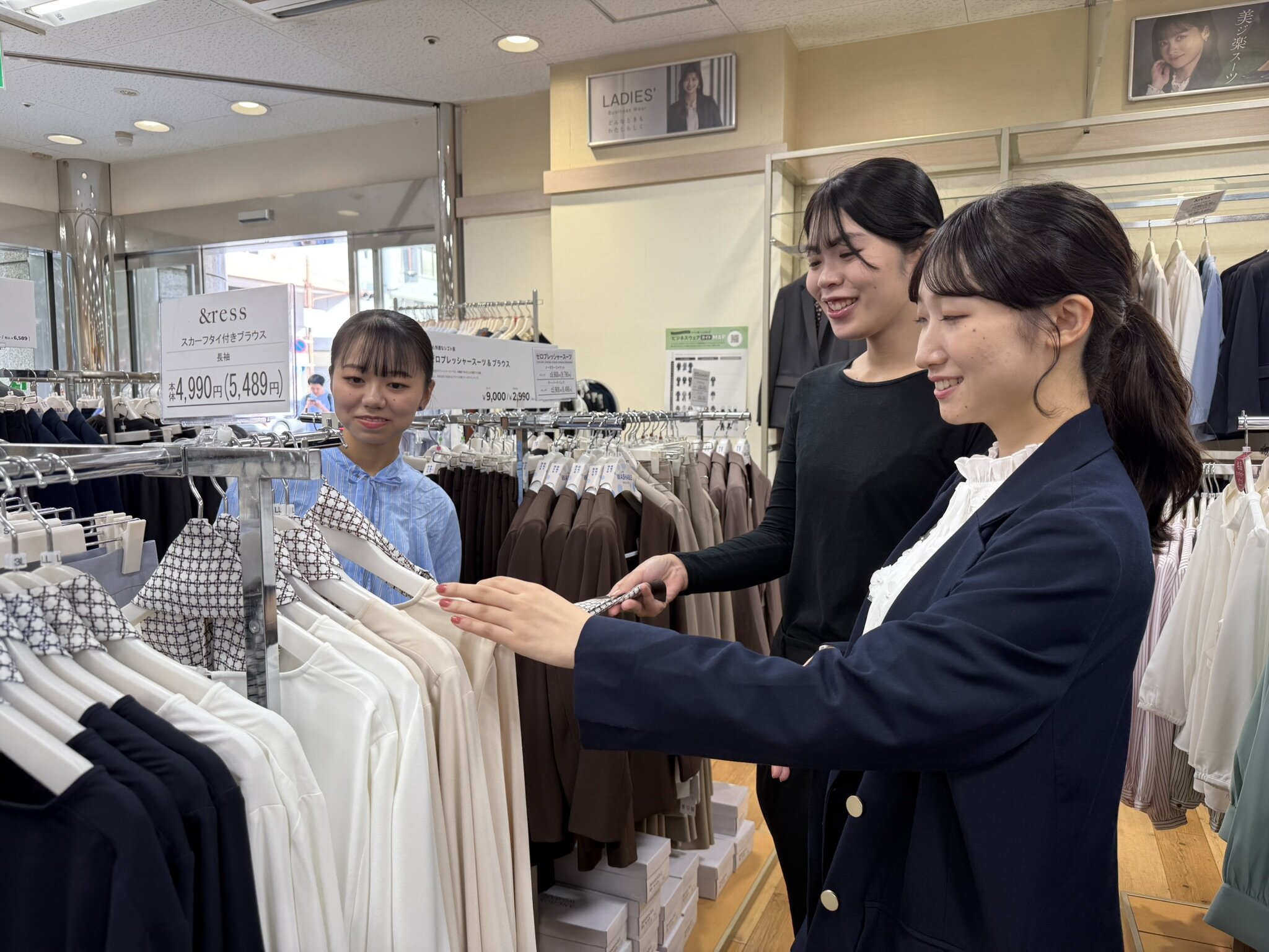 参加した学生からは「"服装自由"の意味を改めて考えるきっかけになった」「業界によって求められる印象の違いを体感できた」といった声が聞かれ、青山商事側からは「学生の皆さんの視点に私たちも学ぶ点が多かった」などのコメントをいただきました。今後の商品・店舗づくりへの活用も検討されるなど、実りある実習となったようです。成果を生かし、更にプロジェクトは進行いたします。