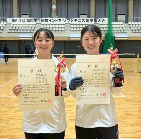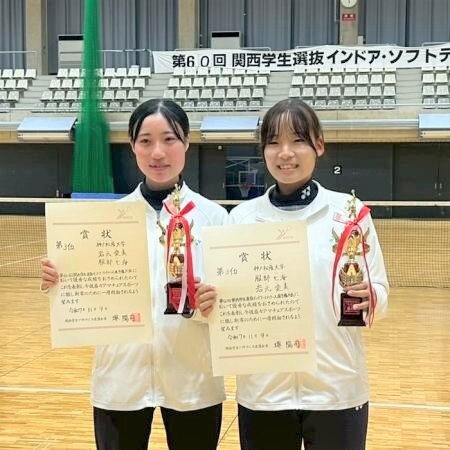11月9日に京都府向日市民体育館で行われた関西学生選抜インドア大会で、岩元望美・本間友里那ペアが優勝し、石原愛菜・木宮歩乃ペアおよび岩元愛美・服部七海ペアが3位に入賞しました。