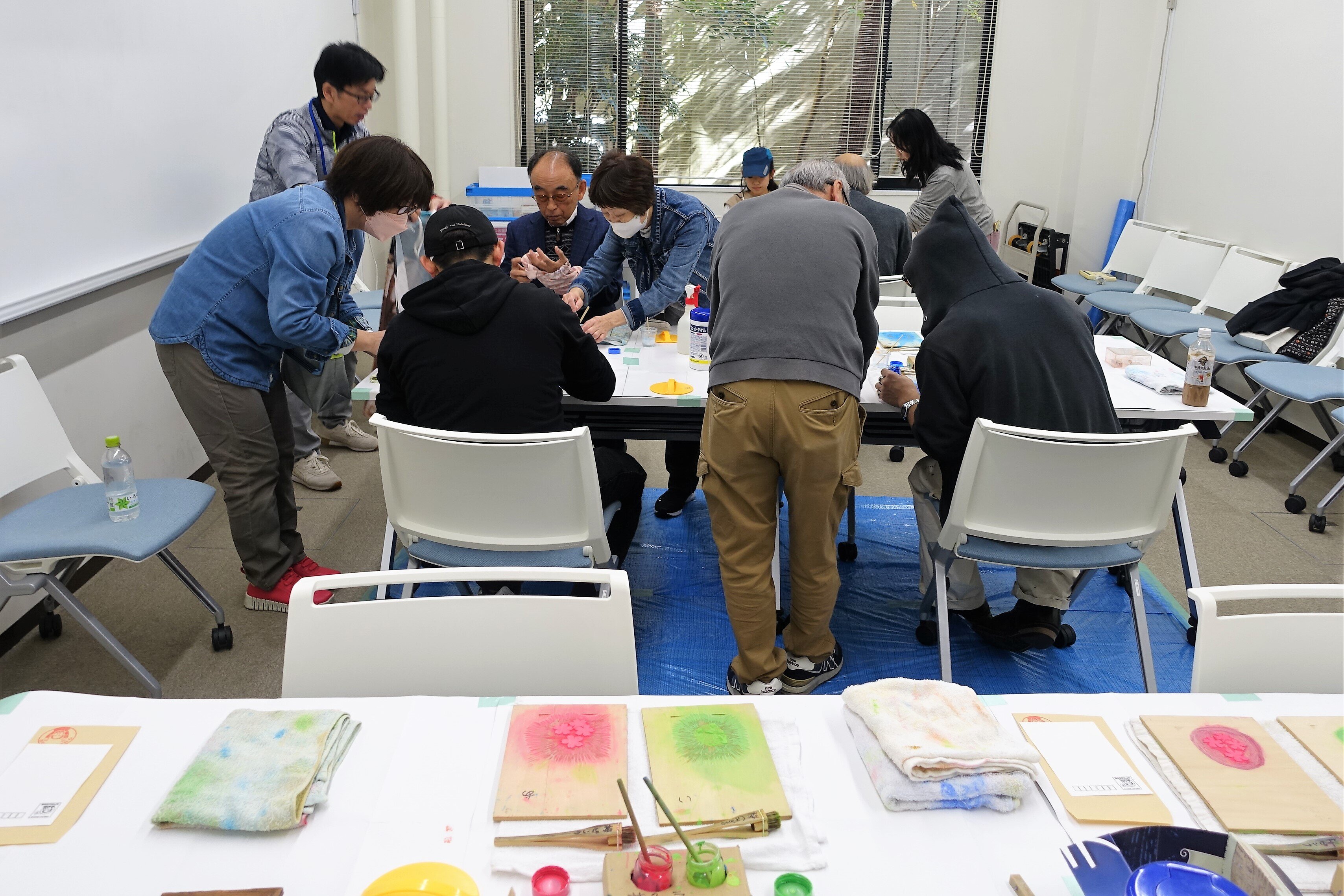 併せて行われた神戸市立博物館の学習支援交流員(ボランティア)有志による「浮世絵摺(す)り体験ワークショップ」では、桜やイルカなどさまざまな柄を用いて印刷体験が行われ、70名以上が参加する盛況ぶりとなりました。