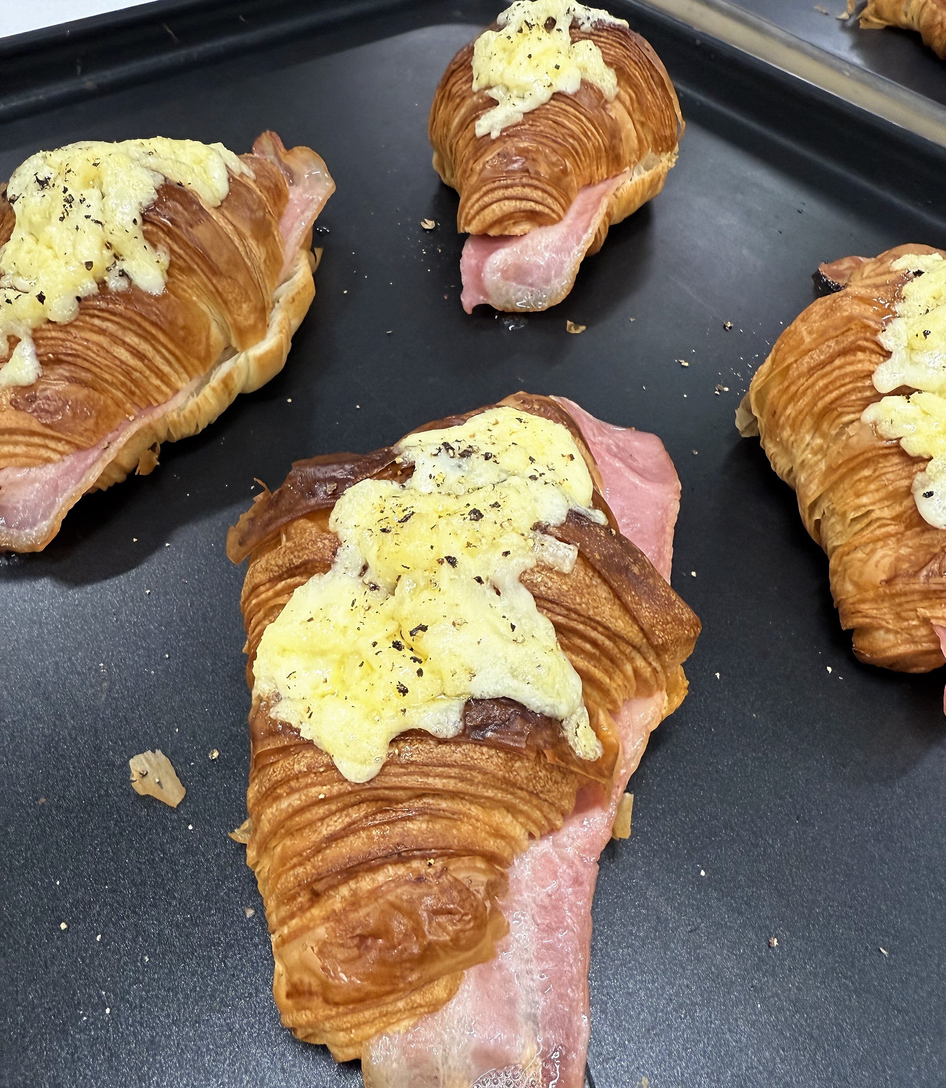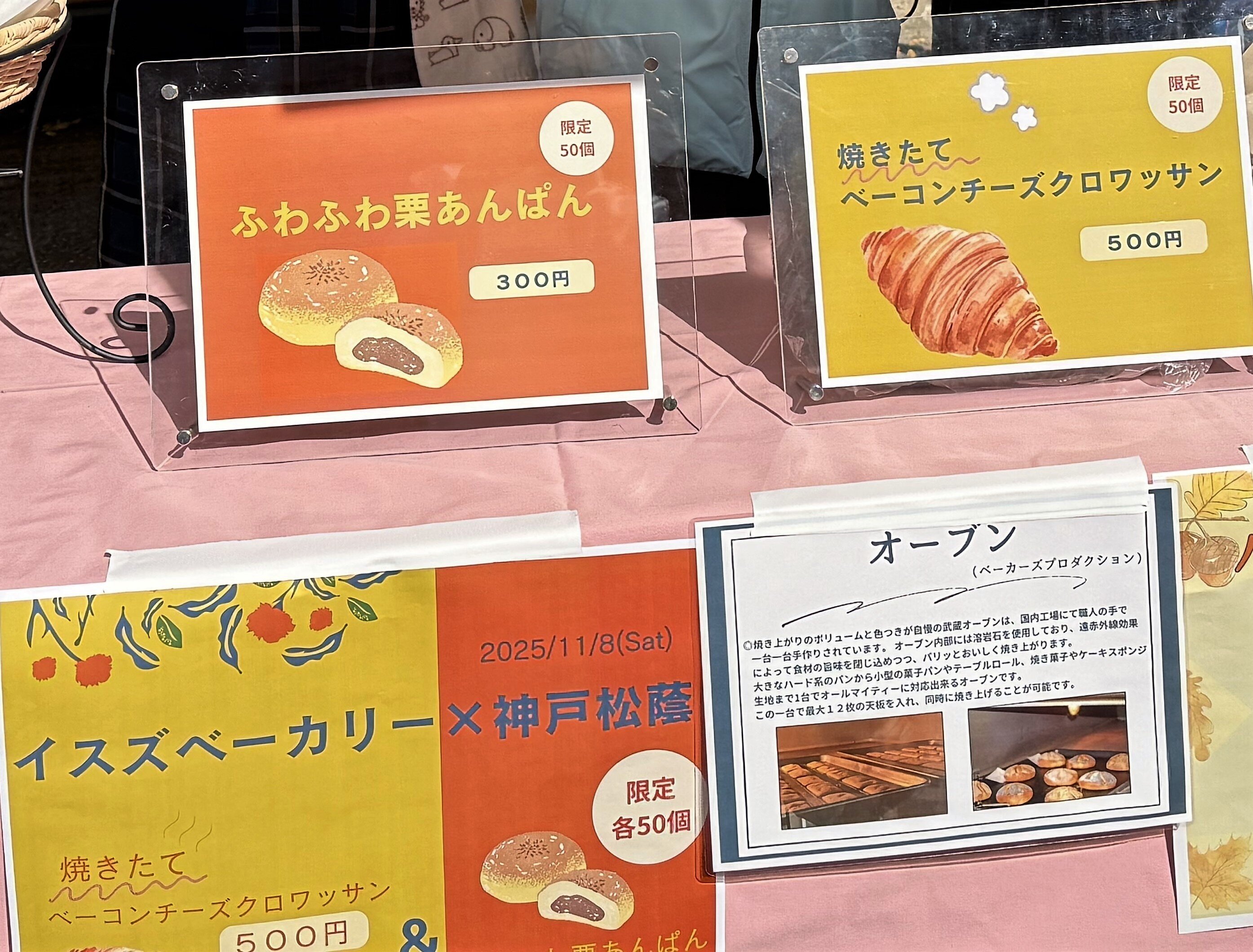 人間科学科と食物栄養学科の有志が神戸を代表するベーカリー「イスズベーカリー」と協力し、「ふわふわ栗あんぱん」と「松蔭オリジナル★ベーコンチーズクロワッサン」を学友会の協力を得て販売しました。同ベーカリー講師の指導により本学の授業で使用しているのは「武蔵オーブン」。内部に溶岩石を用い、遠赤外線効果でパンから洋菓子までオールマイティに焼き上げます。このオーブンで仕上げたベーコンチーズクロワッサンは、焼きあがると即完売となる大人気を博しました。