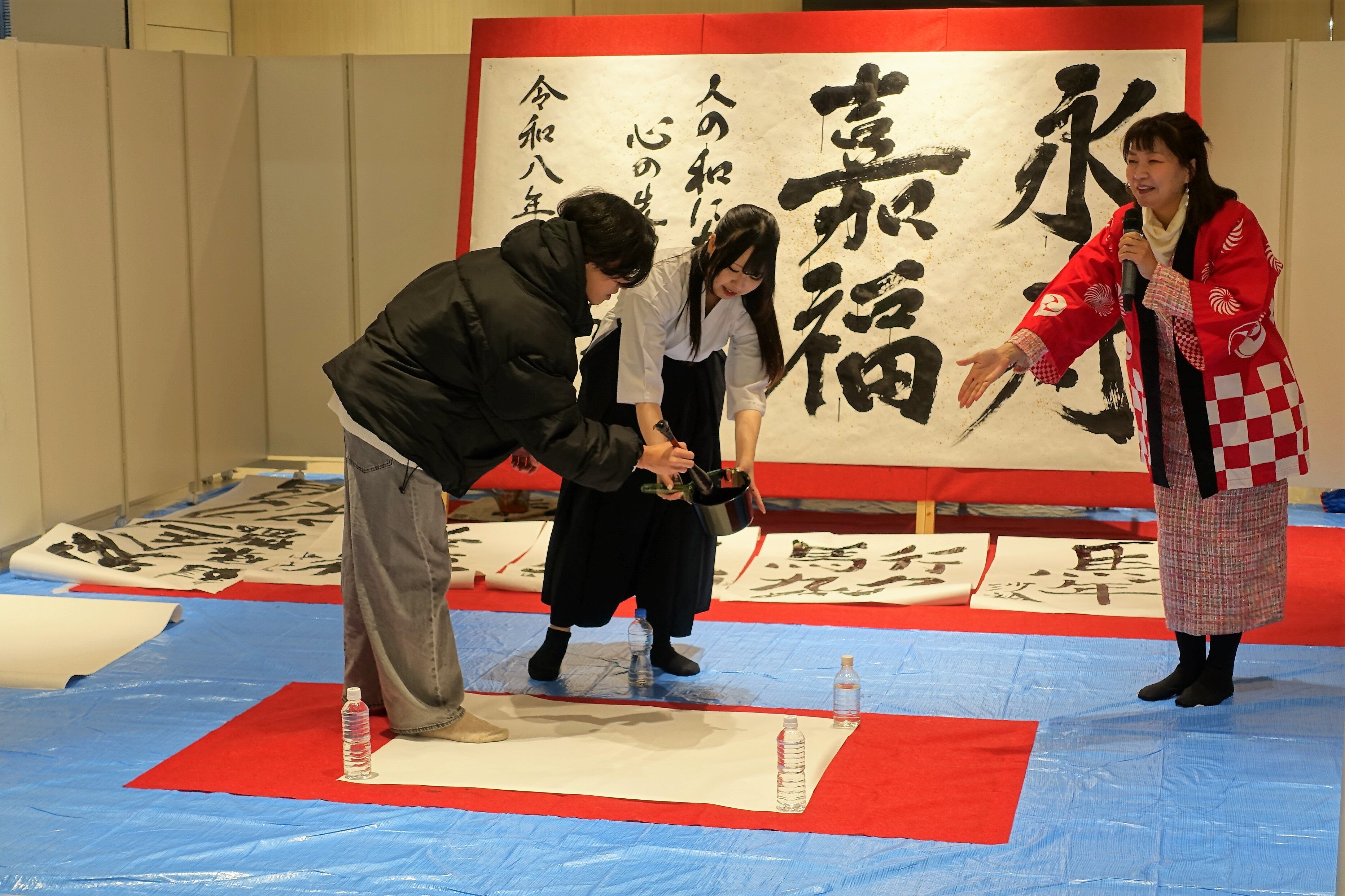 この取り組みは昨年初めて実施し、多くの方々から好評いただいたことを受け、今年度も継続しての実施となりました。学生たちにとっても、お正月という素晴らしい時期に日本文化である書道の魅力を伝える貴重な機会となりました。